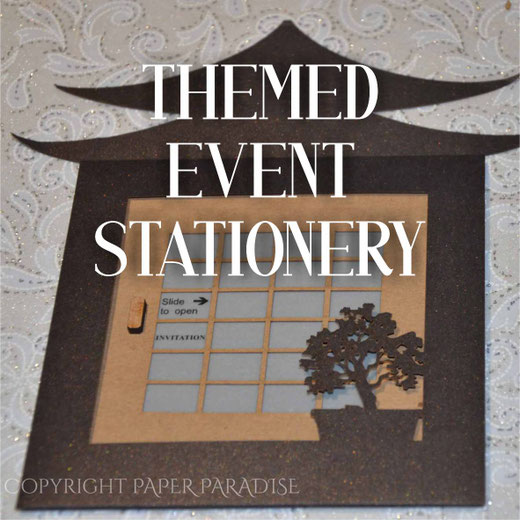 View our Gallery for Themed Event Invitations, Menus, Table Name Cards, Coasters, Drink Mixers, Glass Notes, and so much more, all customised to suit your theme and budget